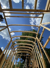 Die tragende Holzplattform entsteht (für 24cm Dämmung):